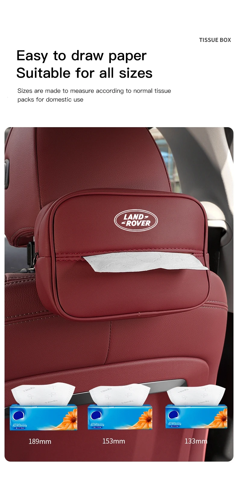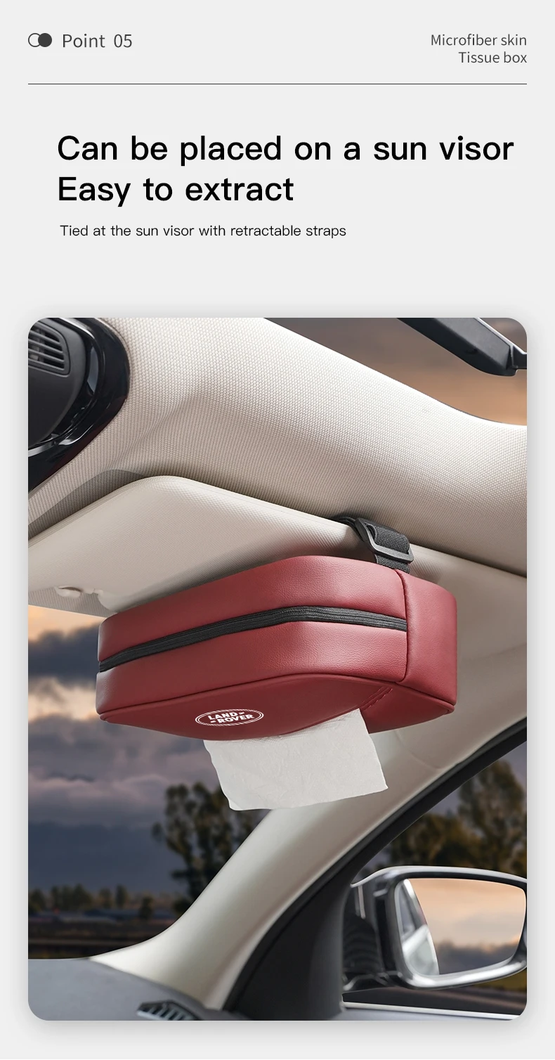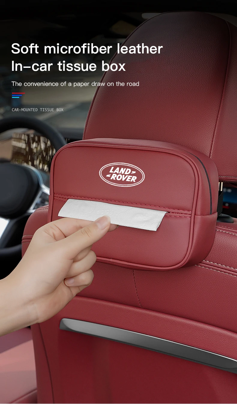 Sac de rangement pour boîte à mouchoirs en cuir pour voiture Accessoires d’intérieur pour Land Rover Range Rover Evoque Velar Defender Discovery Freelander Land Cruiser