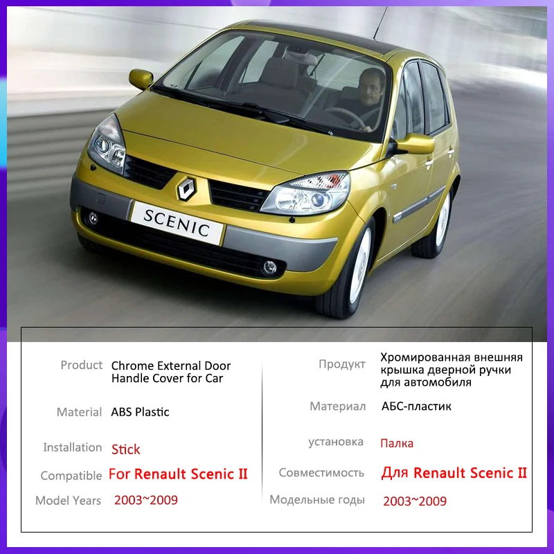 | Couvercle de poignée de porte extérieure en fibre de carbone | Garniture d’autocollant | Accessoires de voiture | Renault Scenic 2 | MK2 | 2003, 2004, 2005, 2006, 2007, 2008, 2009 |