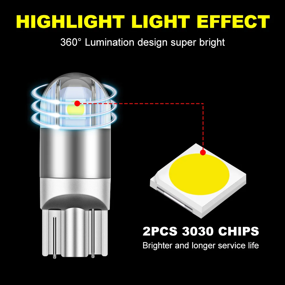 2pcs LED T10 Lumière
