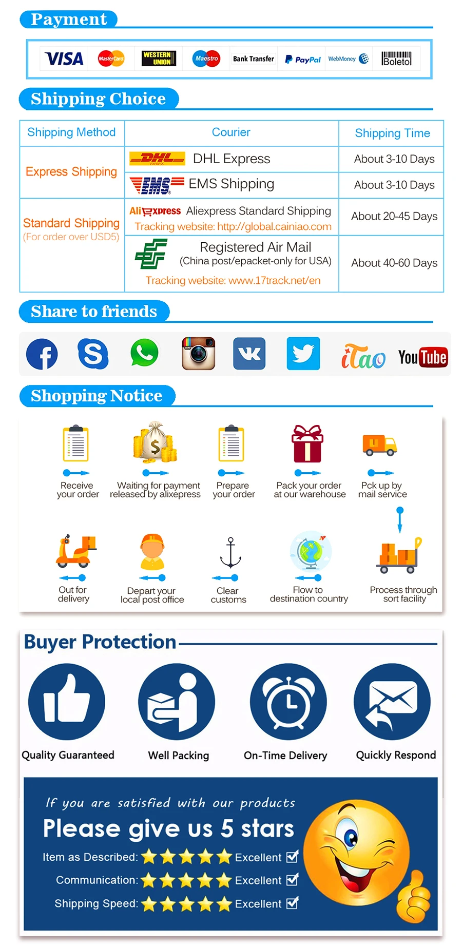 Vos produits seront postés dans les 24 heures après réception du paiement. Nous vous informerons par e-mail en cas de retard dû à des événements de vacances.