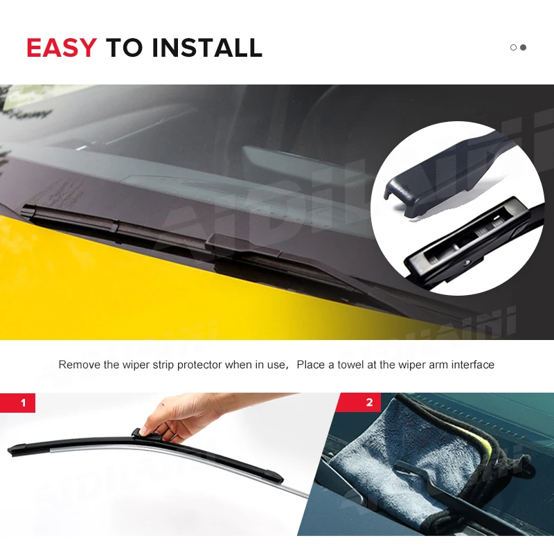 • La combinaison de matériaux de haute qualité permet à l’essuie-glace d’être étroitement attaché au verre, vous donnant une ligne de vue plus claire et assurant la sécurité de conduite.