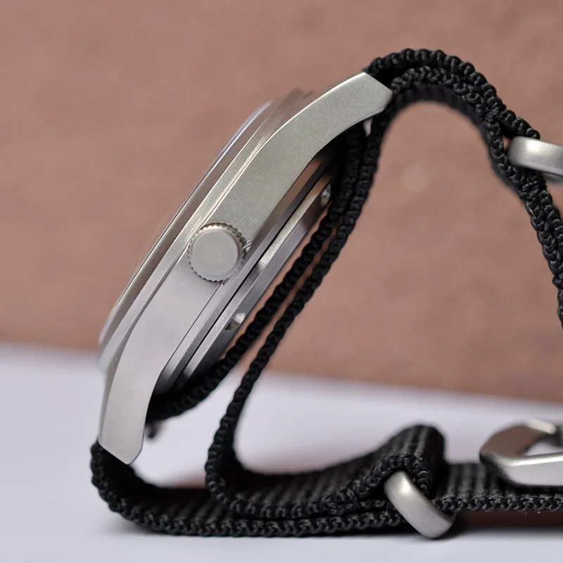 Le verre est en cristal de saphir arqué avec un revêtement AR. Les aiguilles sont revêtues de lumière pour une meilleure lisibilité. Le bracelet est en nylon ou en cuir véritable de couleur aléatoire, avec une largeur de 18mm et une longueur de 22/23cm.