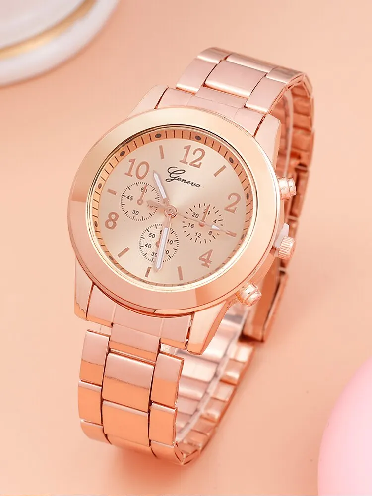 La Montre à Quartz Polyvalente pour Femme est un choix de mode polyvalent, avec son design élégant et sa couleur d’acier or rose qui convient à toutes les occasions. Fabriquée en alliage, la bande offre une durabilité et une résistance exceptionnelles, tout en étant légère et confortable à porter. Avec son mouvement quartz, cette montre garantit une précision et une fiabilité exceptionnelles, vous permettant de garder du temps exact. Ce set de montre et bracelet est parfait pour un style fashion décontracté, ajoutant une touche d’élégance à votre tenue quotidienne. Le bracelet en forme de cœur avec des diamants véritablement incrustés ajoute une touche de glamour et de féminité à ce set. Bien que non étanche, cette montre est conçue pour résister à l’usure quotidienne, vous offrant une protection durable contre l’éclaboussures d’eau et la poussière.