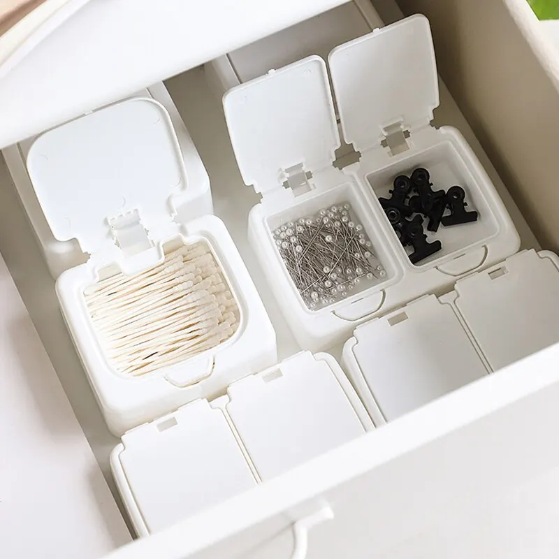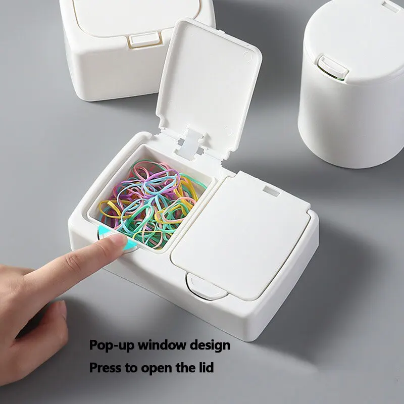 Mini Boîte de Rangement de Coton-Tige de Bureau avec Couvercle, Fenêtre Pop-up, Cosmétique, Anti-Poussière, Finition Plastique pour Étudiant