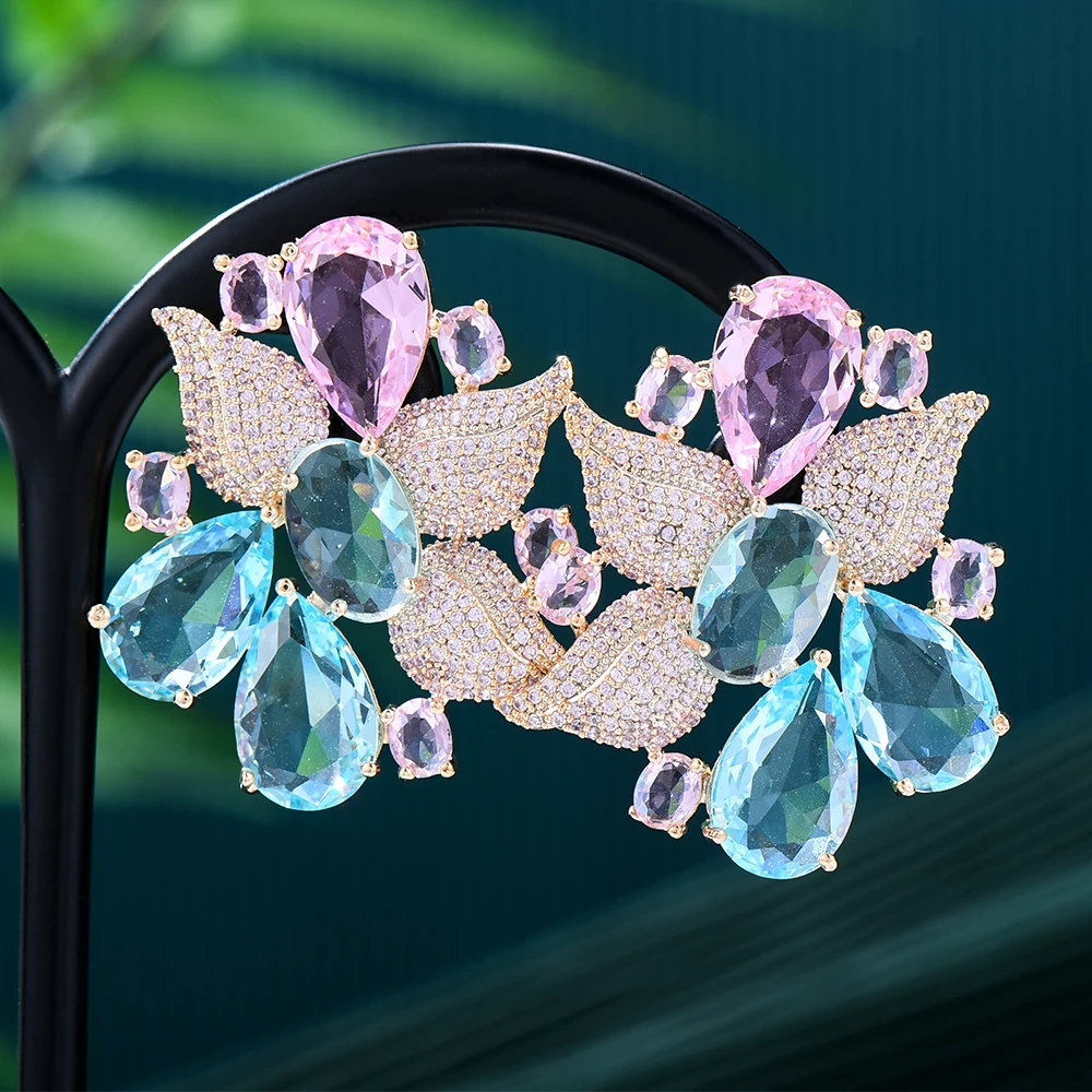 GODpastels-Boucles d’Oreilles Grande Fleur Verte pour Femme, Bijoux pour Mariage, Patients de Dubaï, Cadeau d’Automne