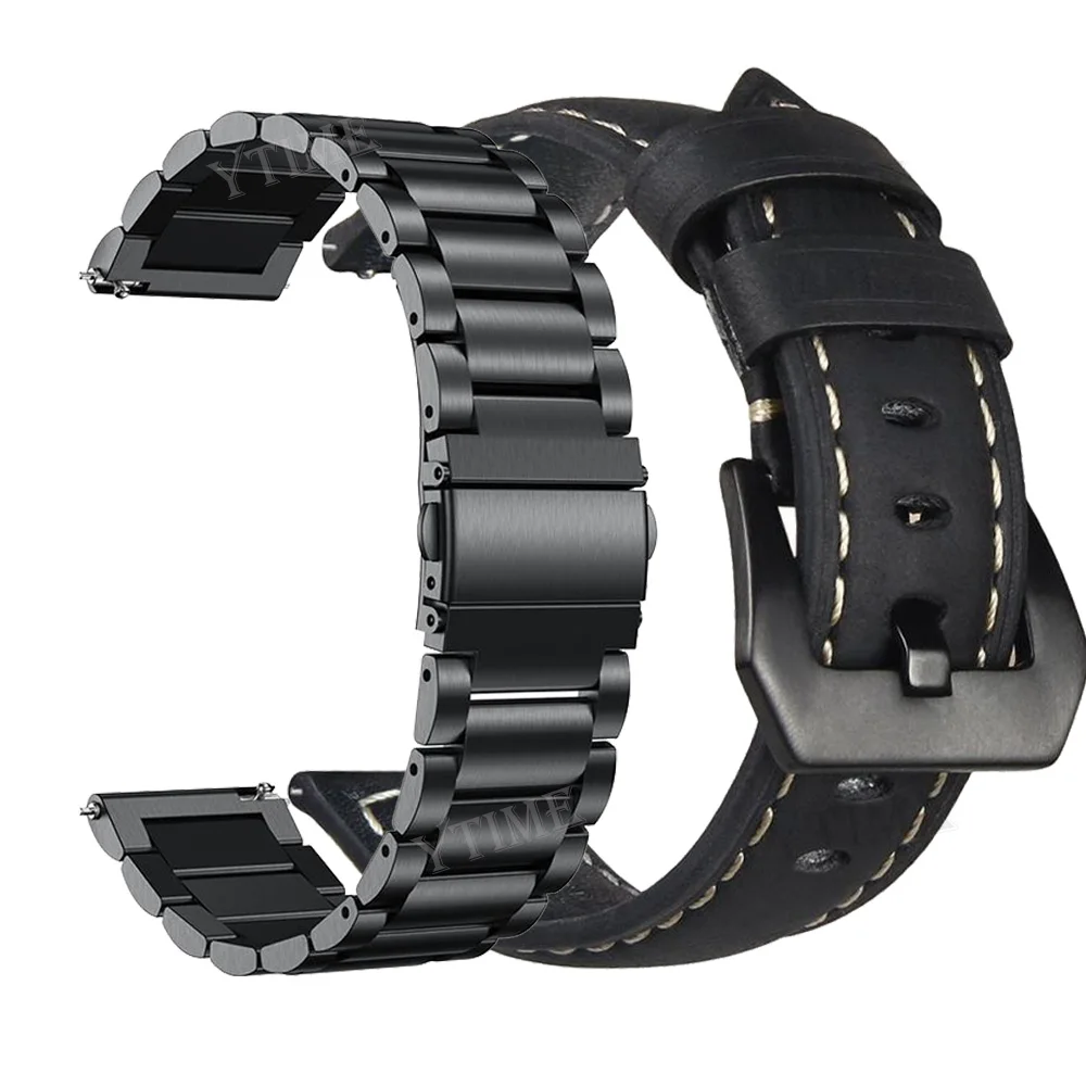 Bracelet de montre en cuir pour Huami Amazfit GTR, bracelet en métal, Pace Stratos, GTS 3, 2, 2E, Bip S, U Pro