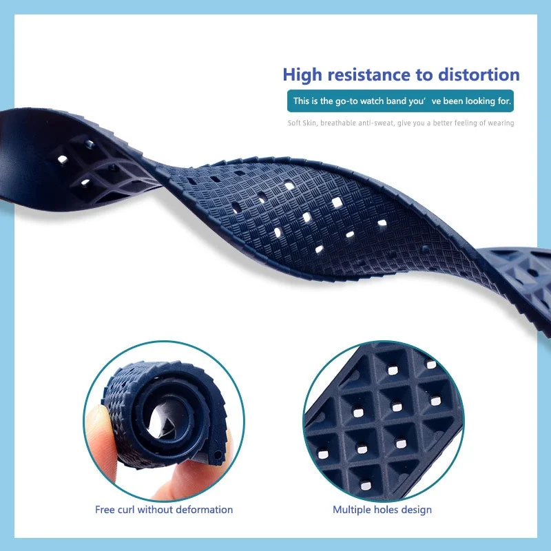 Le bracelet de montre universel à tête plate en caoutchouc TPU tropical, ventilé, silicone, nouveau, libération rapide, 20mm, 22mm est un produit de haute qualité, idéal pour les amateurs de montres. Avec son artisanat exquis et son design élégant, il apportera une touche de sophistication à votre poignet.