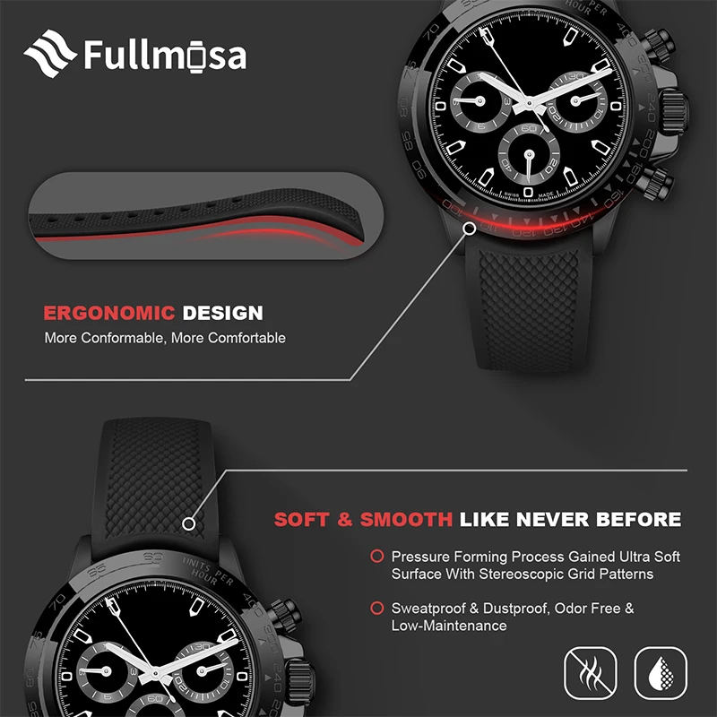 | Compatible avec Samsung Galaxy Watch 46mm, Samsung Gear S3 Classic/Frontier, Huawei Watch GT 2 46mm, Fossil Men’s Gen 6 44mm/Gen 5E 44mm/Gen 5 Garrett HR, etc. | Fabriqué en silicone écologique de qualité supérieure, doux pour la peau et imperméable | Surface pointillée pour un look stéréoscopique, canal large pour un meilleur flux d’air, barre de ressort incurvée pour un ajustement optimal | Conception sans lacunes pour une fixation sécurisée, facile à assembler et à retirer | Disponible en différentes combinaisons de couleurs avec une boucle en acier inoxydable poli |
