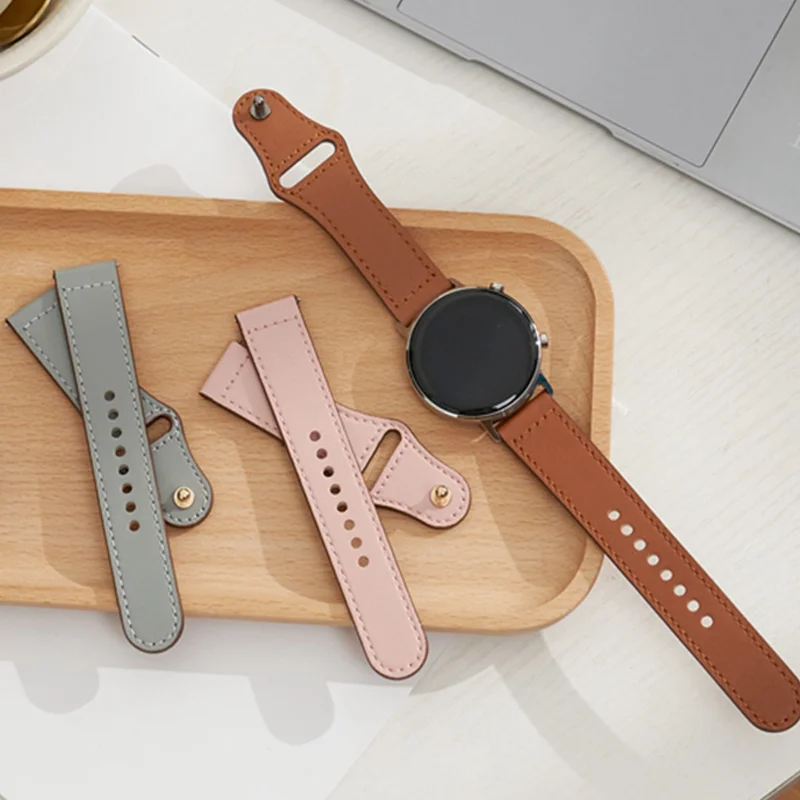 Le bracelet en cuir 20mm 22mm est conçu pour être compatible avec de nombreuses marques de montres, notamment Samsung Galaxy Watch, Huawei, Amazfit Bip, GTS, R, 3/2 mini, Pro Band, Classic, Active 2, 6, 5, 4. Il est fabriqué en cuir de haute qualité, ce qui lui confère une apparence élégante et durable.