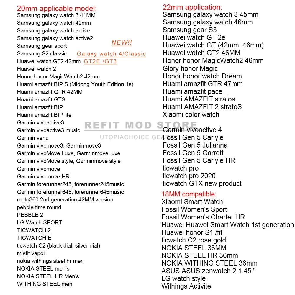 - Modèle compatible de bracelet de montre de 20mm avec Samsung Galaxy Watch 42mm, Amazfit Bip Youth, Ticwatch 2, etc.