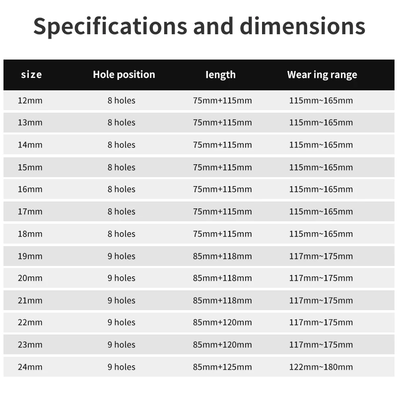 | Taille: | 12mm, 13mm, 14mm, 15mm, 16mm, 17mm, 18mm, 19mm, 20mm, 21mm, 22mm, 23mm, 24mm |