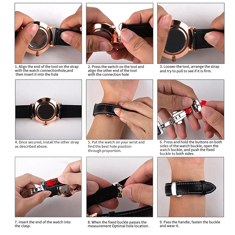 La boucle en acier inoxydable 304 avec sa fermeture à double pression assure une sécurité supplémentaire. Vous pouvez choisir entre les couleurs argent, or et or rose pour correspondre à celle de votre montre.