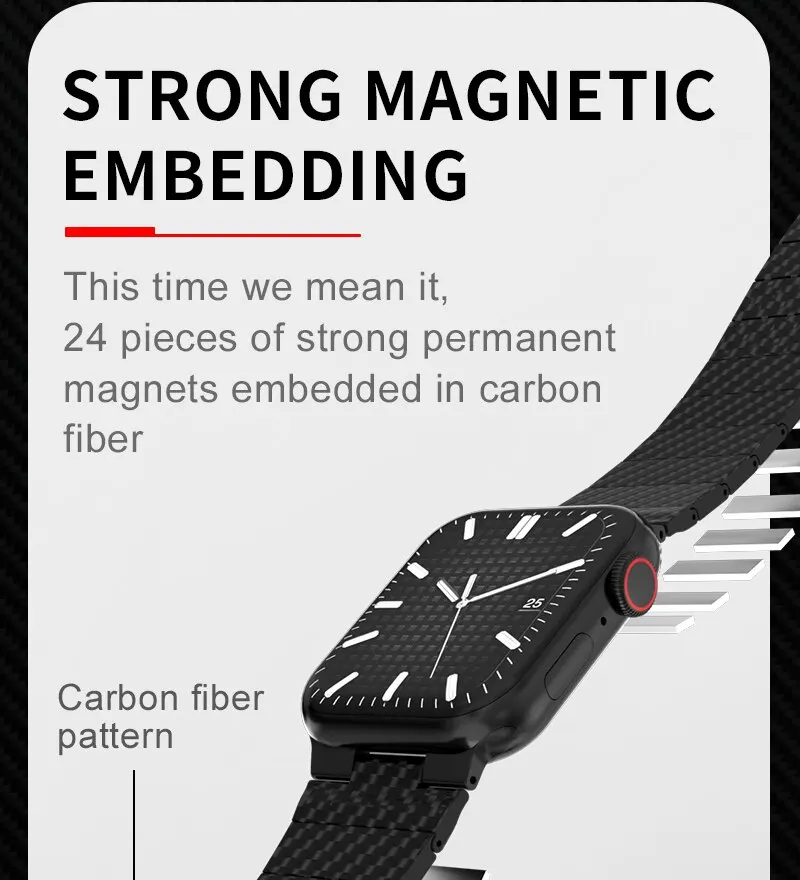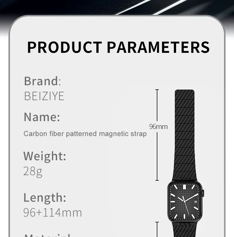 | Matériau de fibre de carbone | Fabriqué en fibre de carbone de haute qualité, le bracelet est léger, durable et confortable à porter. |