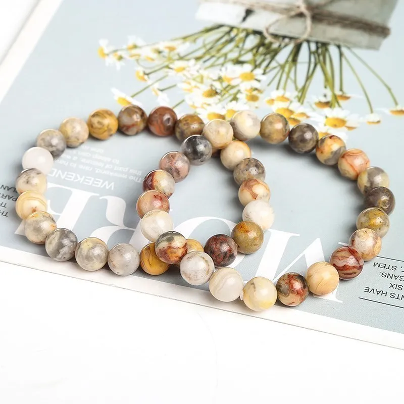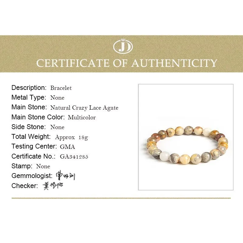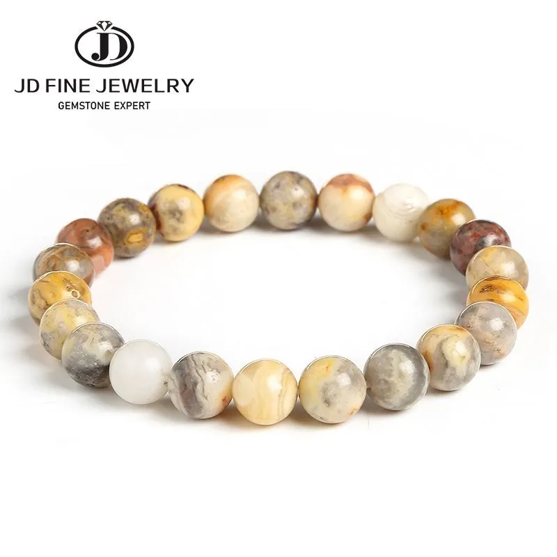 Le bracelet JD en pierre naturelle jaune est un accessoire de qualité. Fabriqué à partir d’agate de dentelle