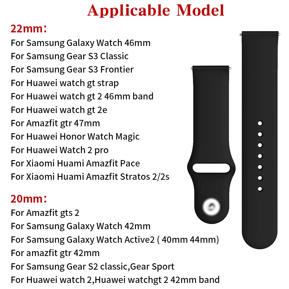 Voici les points importants à retenir du bracelet pour Samsung Galaxy Watch 5/5pro/4/3 Active 2, Huawei GT2e/3/pro, Amazfit GTS2/2e/3/Mini/GTR2e/3pro Band en 20mm/22mm: