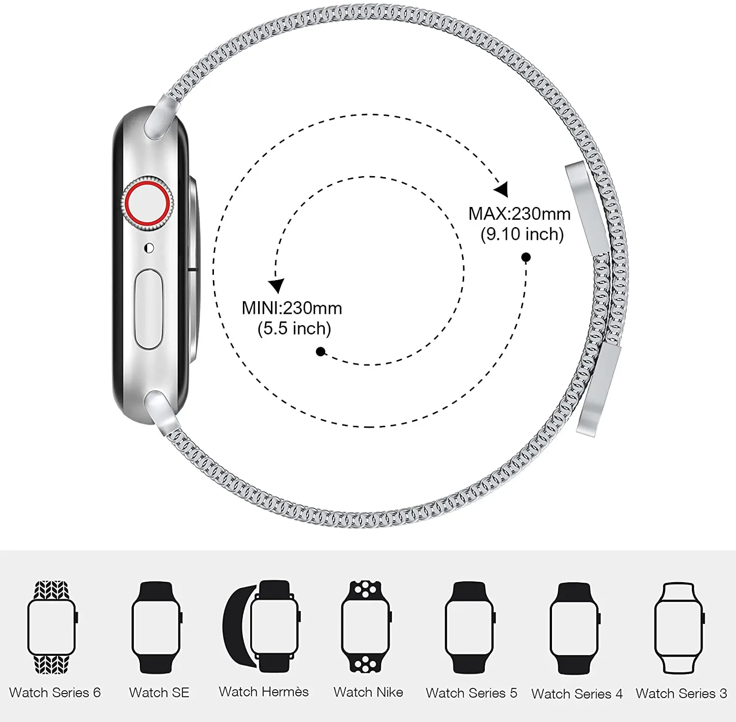 O: Oui, ce bracelet est compatible avec tous les modèles d’Apple Watch, y compris la série 6, 5, 4, 3, 2, 1 et SE.