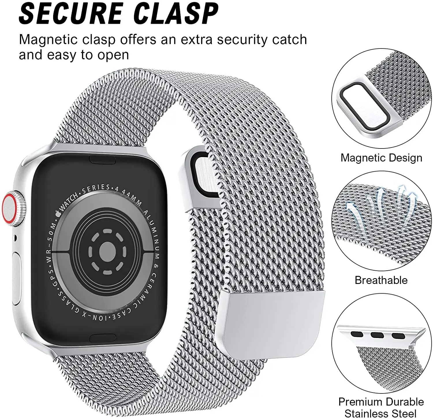 Ce bracelet en métal à boucle magnétique est non seulement élégant et tendance, mais il est également confortable et respirant, ce qui en fait l’accessoire parfait pour toutes les occasions. Que vous soyez au travail, en soirée ou lors d’une séance de sport, ce bracelet ajoutera une touche de style à votre Apple Watch.
