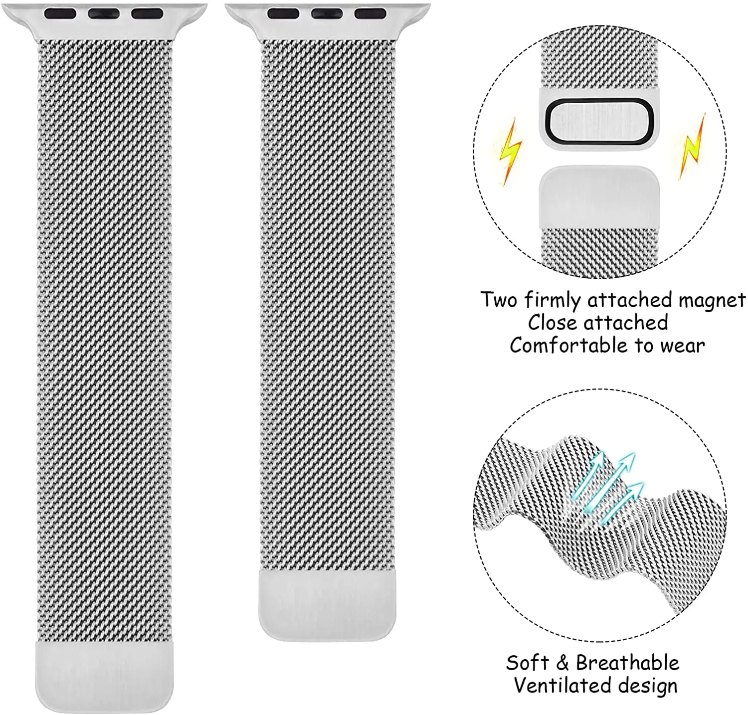 Le fermoir magnétique permet une fixation sécurisée et facile, ce qui rend le bracelet facile à mettre et à enlever. La taille est ajustable pour s’adapter à tous les poignets et la couleur est disponible en 21 options différentes, y compris l’argent, le noir, l’or, l’or rose, le bleu, etc.