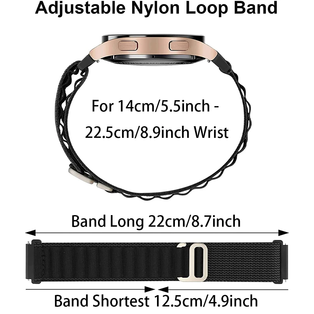 Le bracelet de 20mm est compatible avec Samsung Galaxy Watch 5 40mm 44mm, Galaxy Pro 5 45mm, Galaxy Watch 4 40mm 44mm, Galaxy Watch 4 Classic 42mm, Galaxy Watch Active 2 40mm 42mm, Galaxy Watch 3 41mm, et les écouteurs Galaxy Watch 42mm.