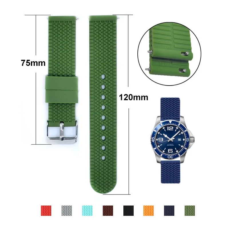 Le bracelet de montre en silicone pour hommes et femmes est disponible en 10 couleurs différentes, offrant une grande variété en termes de style. Le matériau en silicone souple assure un confort optimal tout au long de la journée, idéal pour les activités sportives, dont la plongée. La boucle en acier inoxydable ajoute une touche de durabilité au bracelet.