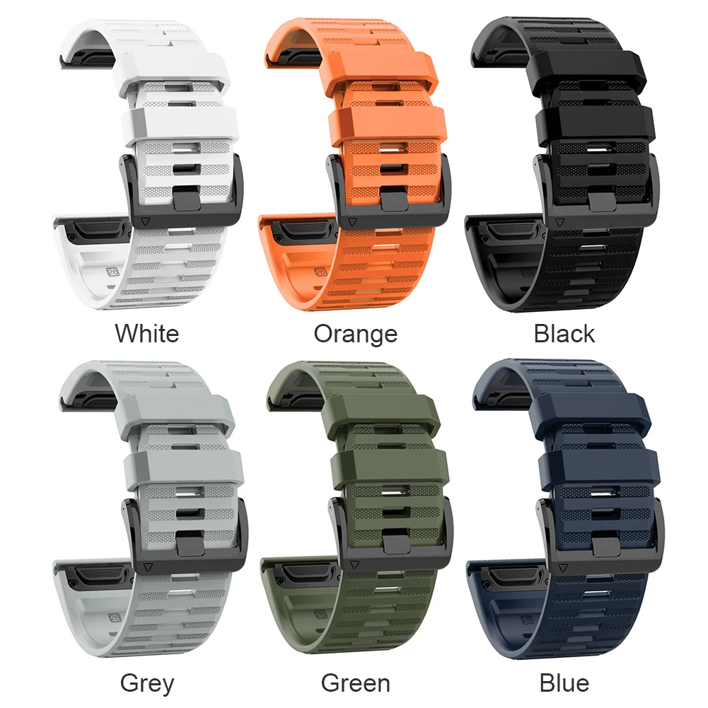 Le bracelet de montre en silicone coloré est une pièce de rechange pour les montres intelligentes Garmin Fenix 6, Garmin Fenix 5 Plus, Garmin Fenix 5, Garmin Forerunner 935, Garmin Quatix 5, Garmin Quatix 5 Sapphire, Garmin Approach S60 et Garmin Instinct. Ce bracelet est conçu avec une douceur modérée pour un meilleur confort lors de son utilisation. Son style de conception simple conviendra à tous les goûts. De plus, la taille du bracelet peut être ajustée en fonction des besoins personnels du poignet.