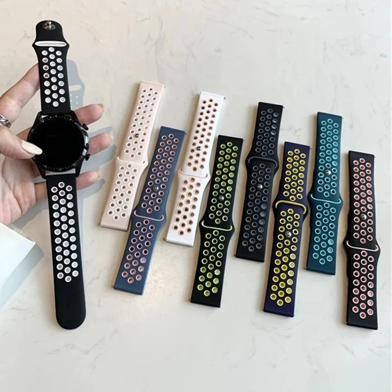 Marque Bracelet en silicone pour Samsung Galaxy 4, 20mm, 22mm, 46mm, 42mm, 4, 5, Active 2, Gear S3, Bracelet de sport, Huawei Watch, IGHT2, 2e Pro Strap