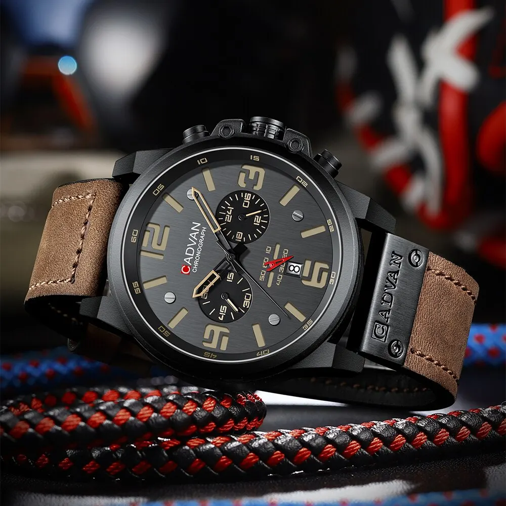 La montre CADVAN est équipée d’une fonctionnalité chronographe, ce qui permet un chronométrage précis et un suivi du temps écoulé. Cela en fait une montre idéale pour les amateurs de sport et de fitness.