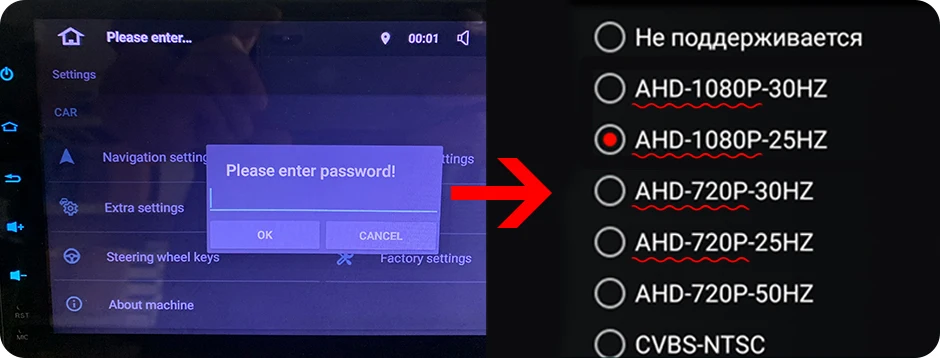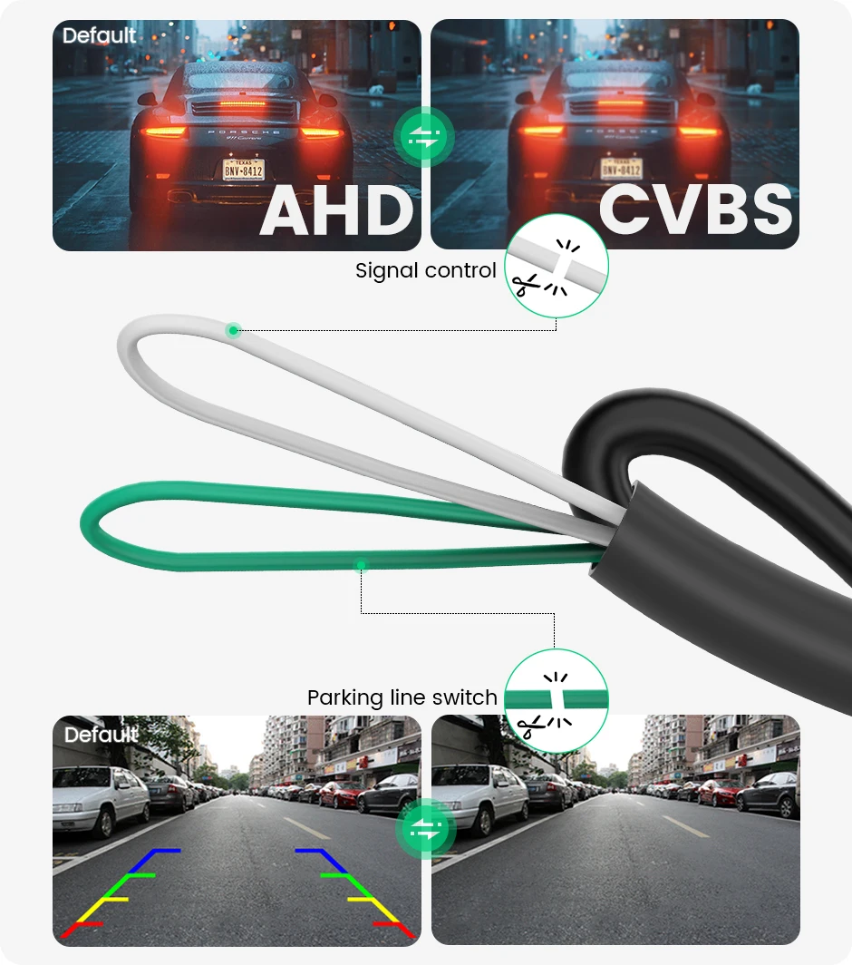 Allez dans Paramètres de voiture >> Paramètres d’usine >> Paramètres de marche arrière (image) >> Sélectionnez AHD