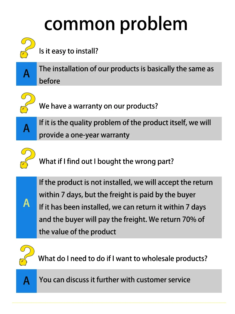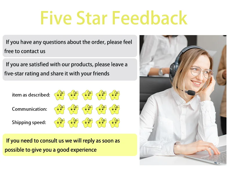 Nous maintenons des normes d’excellence élevées et nous nous efforçons de satisfaire nos clients à 100%! Si vous avez des questions sur vos produits, vous pouvez également venir à nous et nous ferons de notre mieux pour résoudre le problème pour vous. Nous vous répondrons dans les 24 heures. Si vous constatez que votre produit ne correspond pas à la photo, veuillez nous contacter immédiatement, nous nous en occuperons dès que possible.