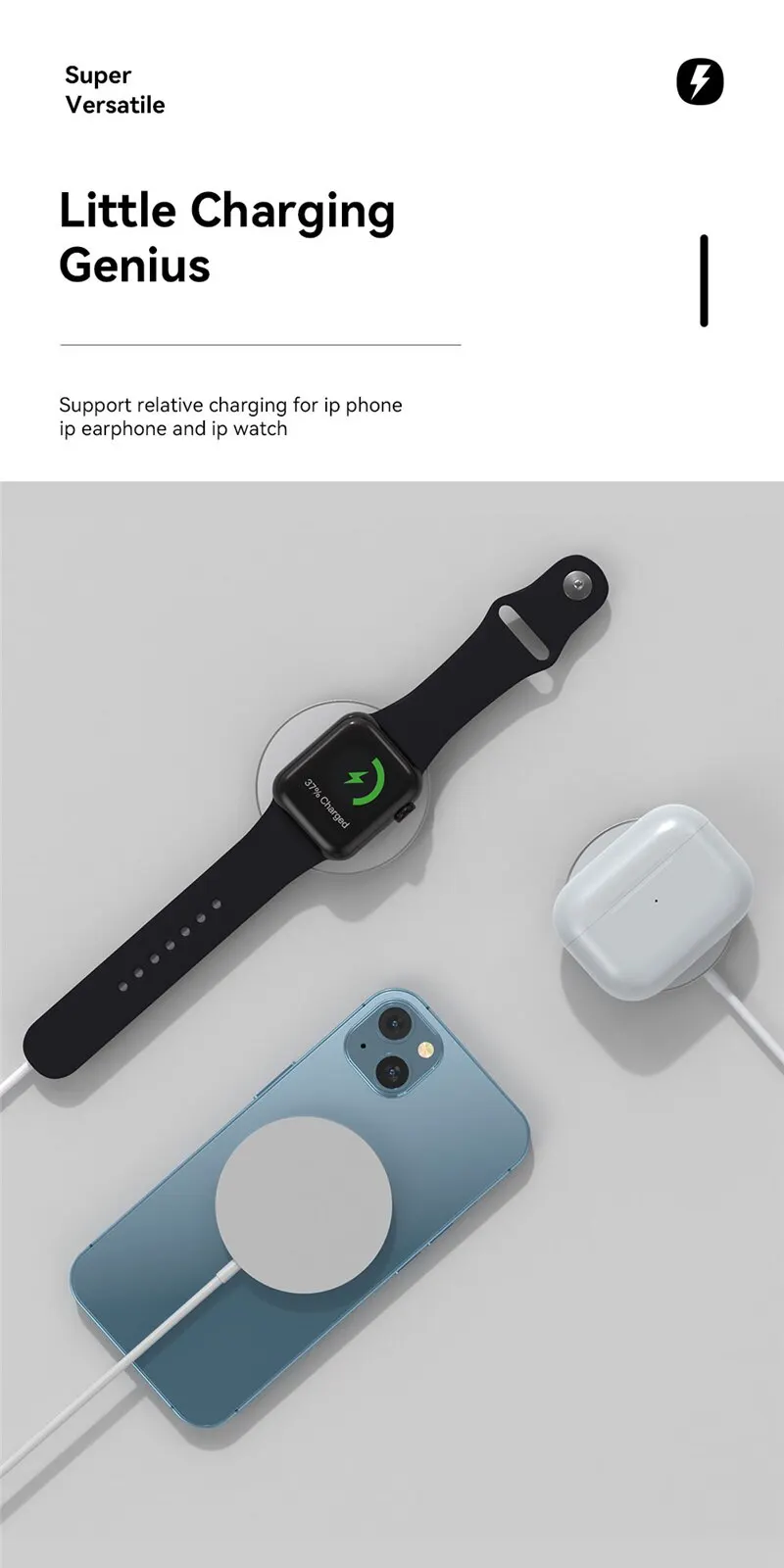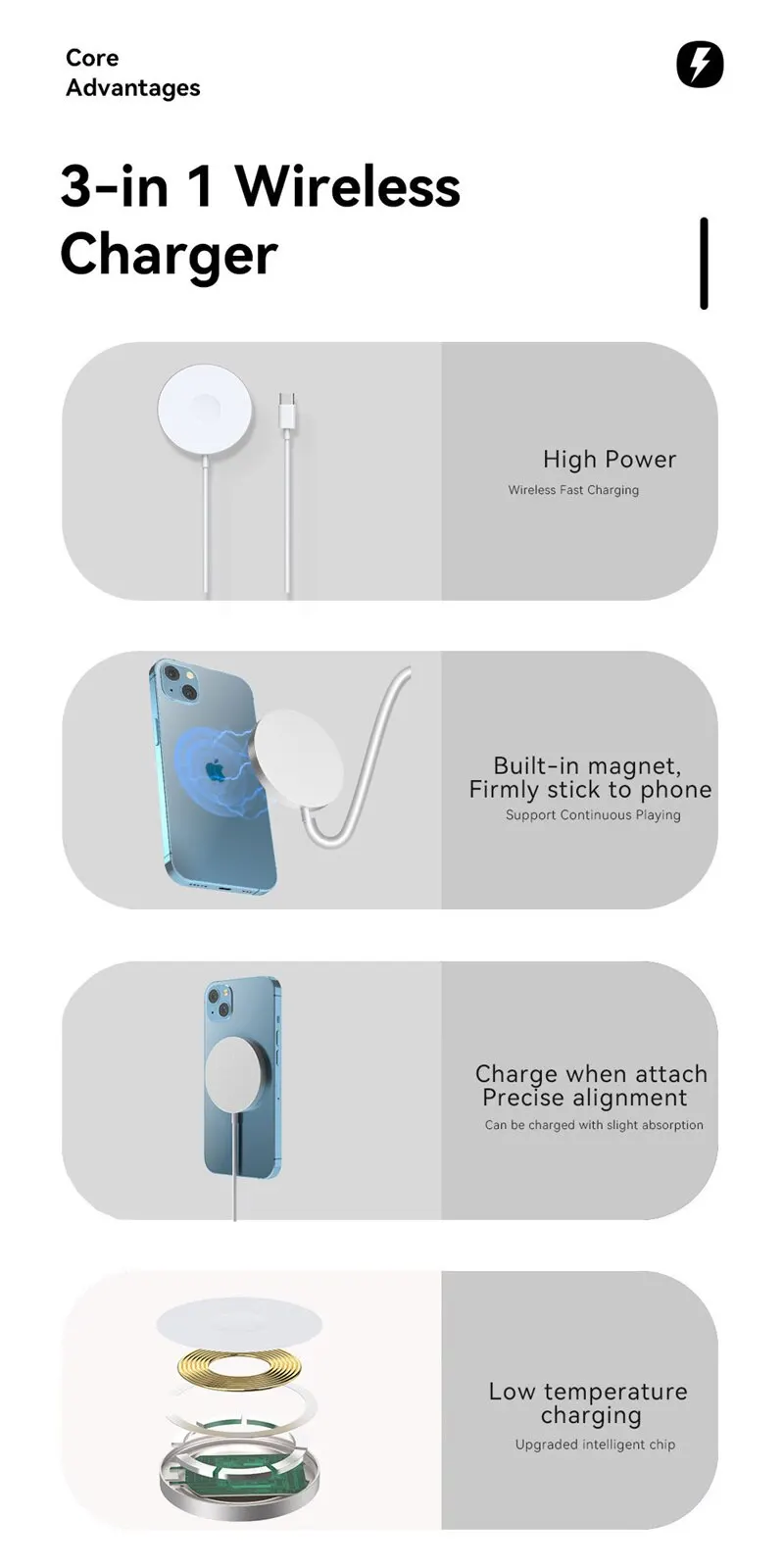 Astuce: Chargement magnétique sans fil 15W, prend en charge la charge des téléphones portables, des montres Apple, des écouteurs et d’autres appareils de recharge sans fil.