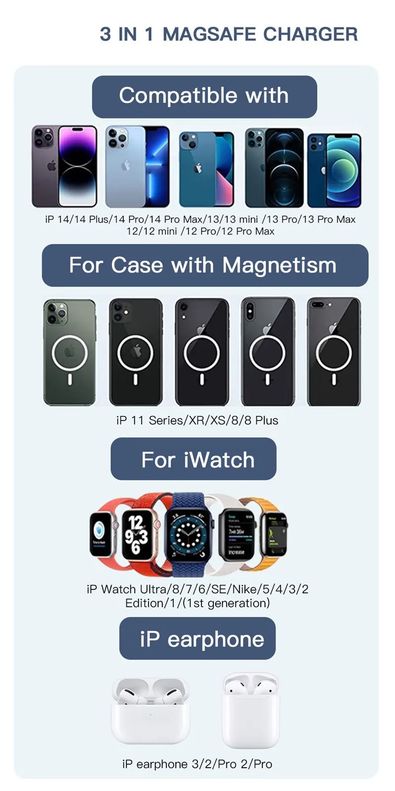 - 3 en 1 : compatible avec iPhone 14, 13, 12, Apple Watch et Airpods Pro