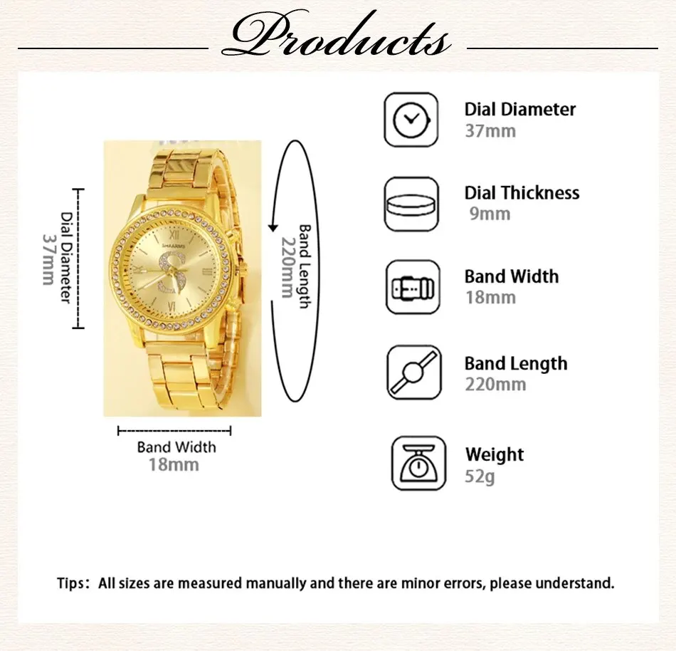 - Ensemble de bijoux polyvalent : Cet ensemble comprend une montre, une bague, un collier et des boucles d’oreilles, ce qui en fait un ensemble de bijoux polyvalent qui peut être mélangé et assorti pour toutes les occasions.