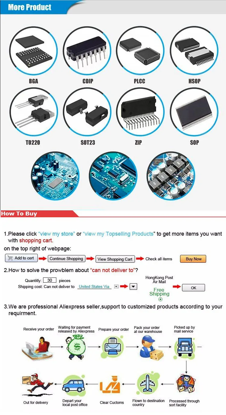 Notre activité principale comprend: transistor, diode, module, IC, relafters, oscillateur à cristal, condensateur, résistance, LED, optopar, fusible, inducteur, commutateur. .. Et plus.