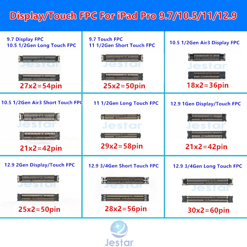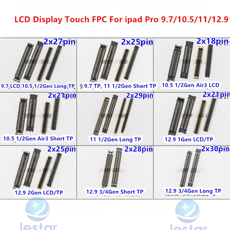 | Modèle | Connecteur FPC tactile d’affichage LCD pour carte mère iPad Pro 9.7, 11, 10.5, 12.9, 1, 2, 3/4, Isabel Air3 |