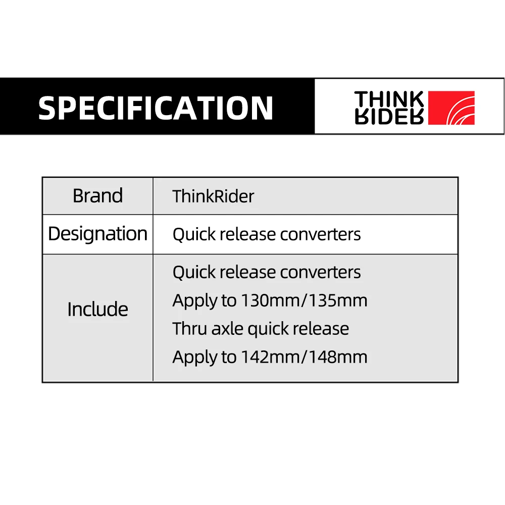 Le Thinkride-Convertisseur d’axe transversal à disque est un accessoire d’entraînement de vélo qui offre un dégagement rapide de l’essieu traversant. Il est compatible avec les dimensions de vélos suivantes : 130mm, 135mm, 142mm et 148mm.