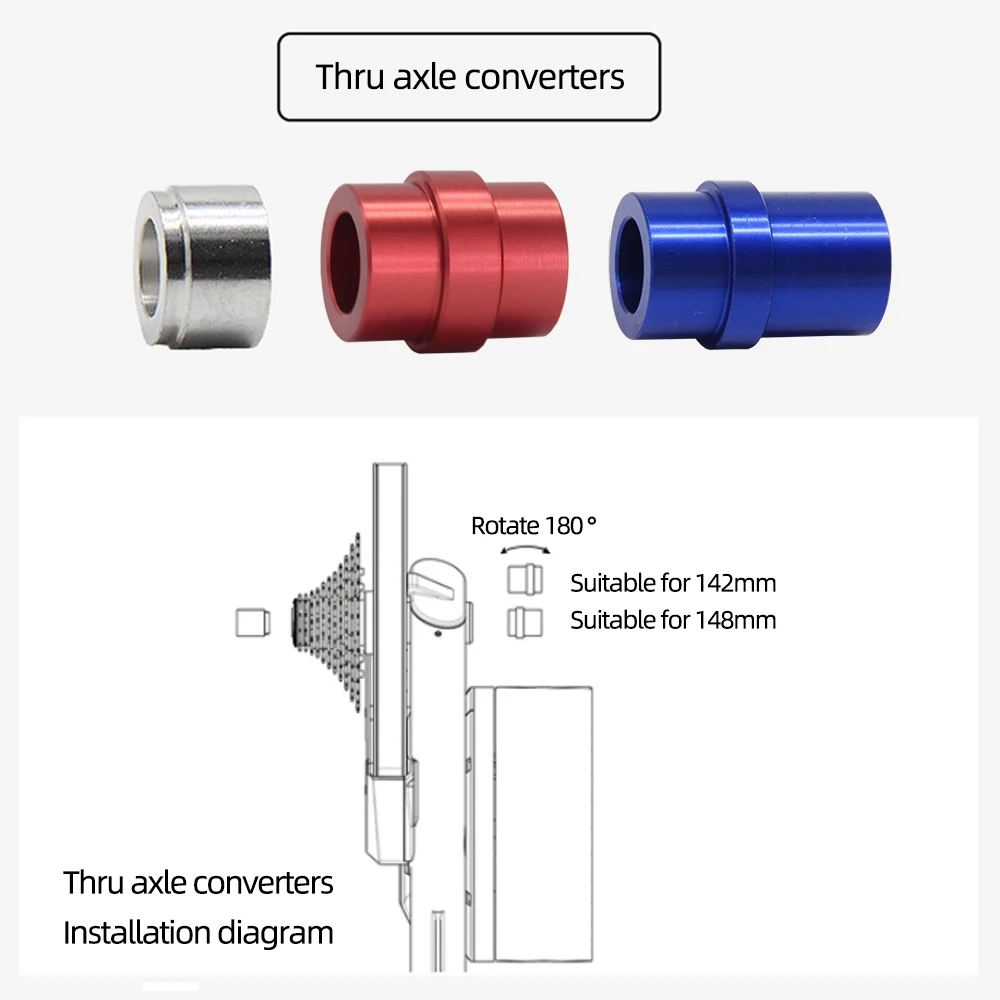 Les convertisseurs rapides sont conçus pour les dimensions de 130mm et 135mm, tandis que le dégagement rapide de l’essieu traversant convient aux dimensions de 142mm et 148mm.