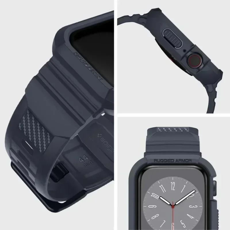 La coque en caoutchouc robuste Armor Pro est conçue pour la Apple Watch Ultra 2 et les bandes des séries 9, 8, SE2, 7, 6, SE, 5/4. Elle offre une protection quotidienne contre les rayures grâce à sa couche flexible et absorbant les chocs. Son fini mat avec des accents en fibre de carbone ajoute un look moderne et élégant à votre montre. Les bandes surélevées offrent une protection renforcée de l’écran, tandis que le bracelet réglable avec fermoir métallique sécurisé assure un maintien sûr et confortable. Cette coque est spécialement conçue pour s’adapter parfaitement à la Apple Watch Band avec Case 45mm/44mm Série 9/8/SE2/7/6/SE/5/4 et convient aux poignets de 5.5 à 8.5 pouces (140mm à 215mm).