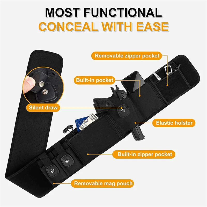 L’étui tactique pour pistolet à ventre DulBelly est une ceinture dissimulée de transport avec un holster invisible pour odor. Idéal pour une utilisation militaire, cet étui peut contenir des pistolets, des chargeurs de magazines et autres accessoires. Fabriquée en néoprène réglable, cette ceinture est suffisamment confortable pour être portée directement contre la peau.