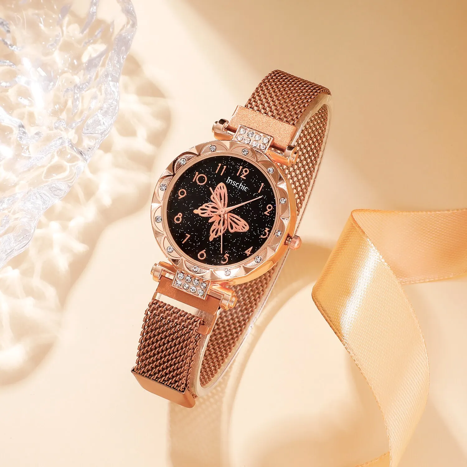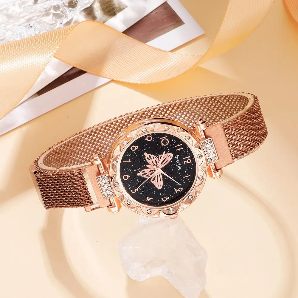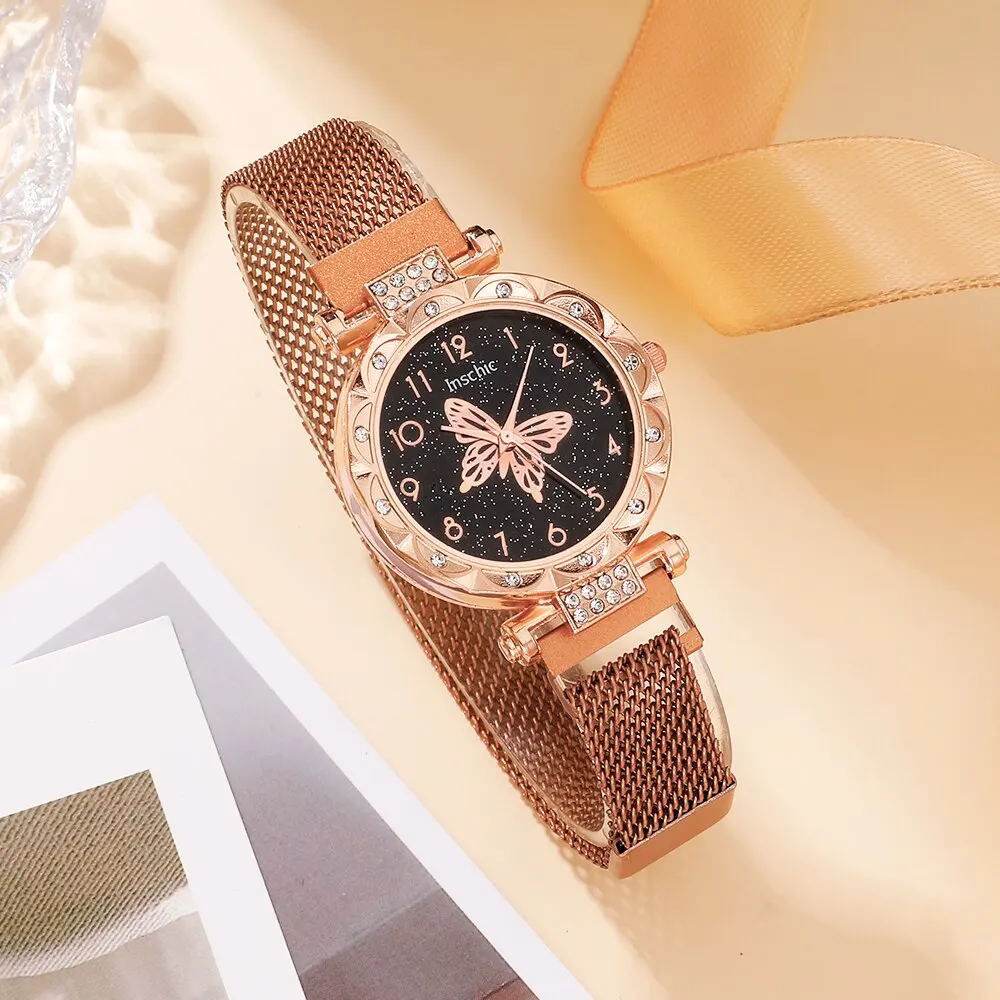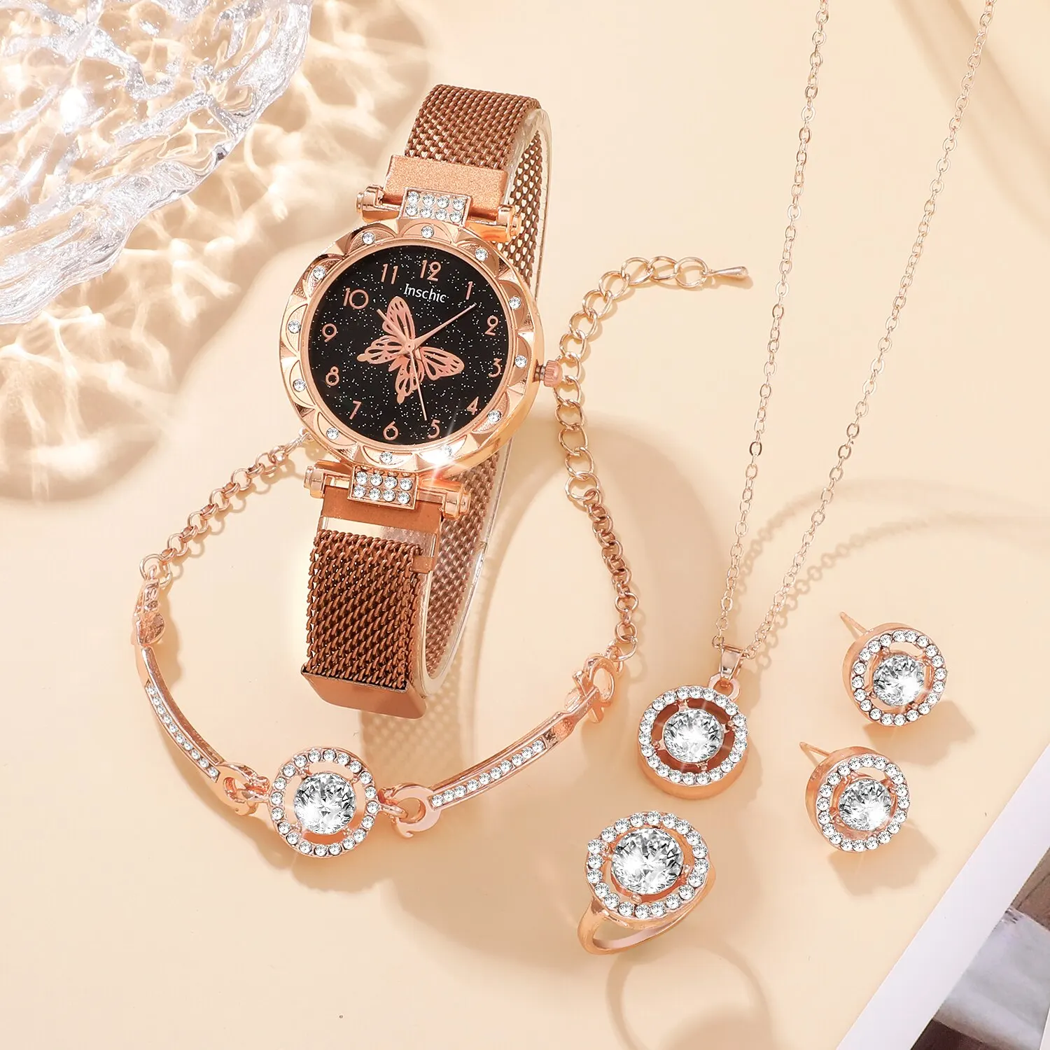 - Conception incrustée de strass : La montre, la bague, le collier et les boucles d’oreilles sont ornés de strass étincelants, ajoutant une touche de glamour à n’importe quelle tenue.