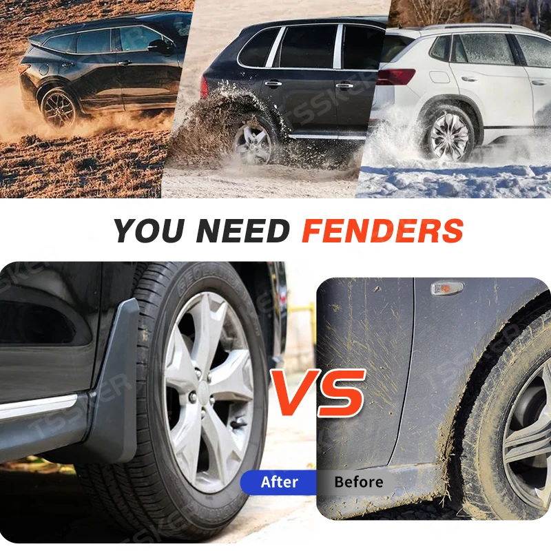 ProtectionLes garde-boue protègent la partie inférieure de la voiture de l’influence de la neige, du sel, du sable, des roches et d’autres débris autour des roues
