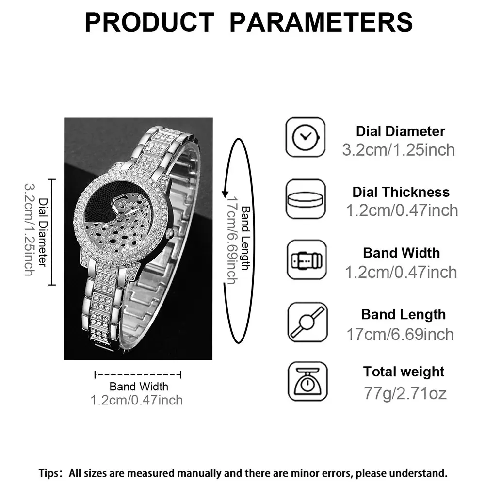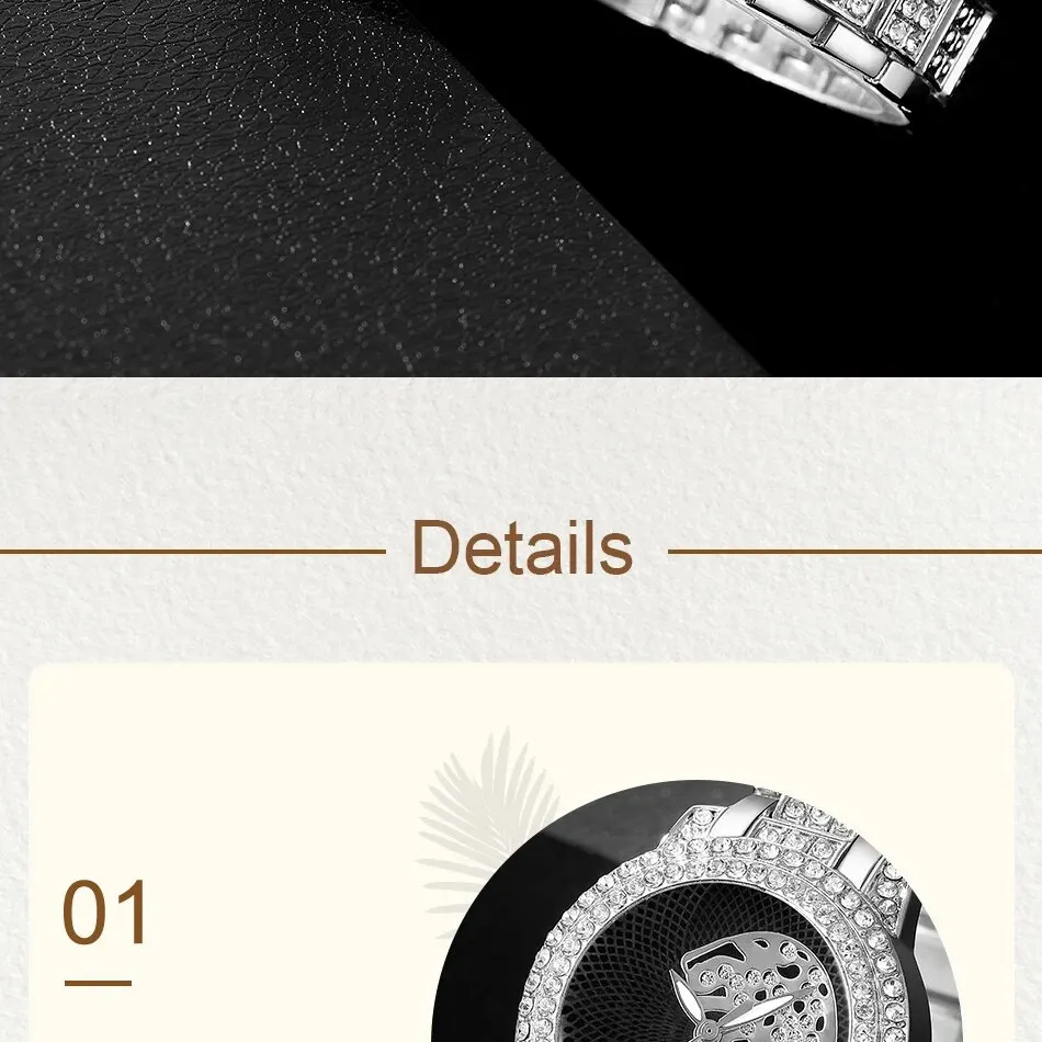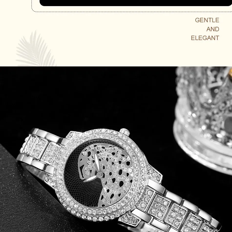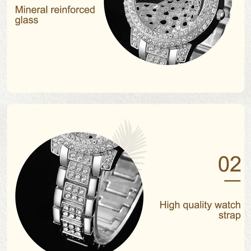 Le cadran de la montre est orné de strass étincelants, ajoutant une touche de glamour à n’importe quelle tenue.