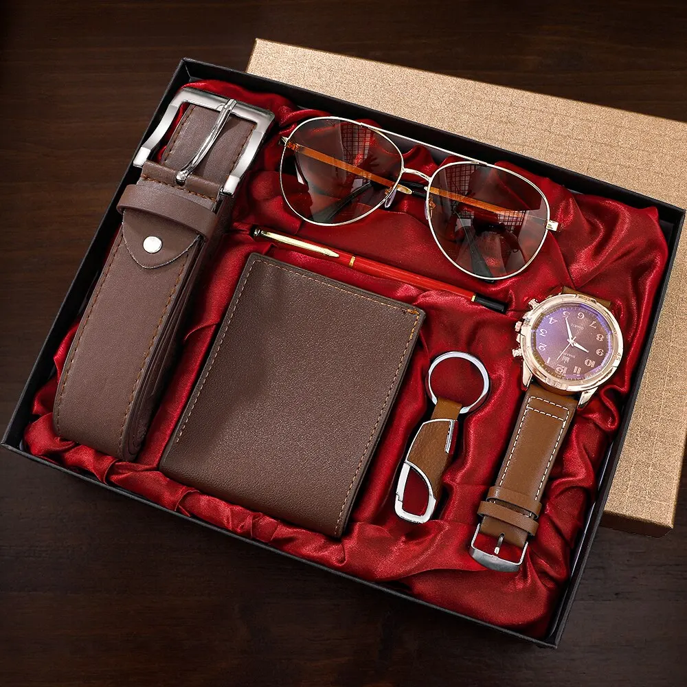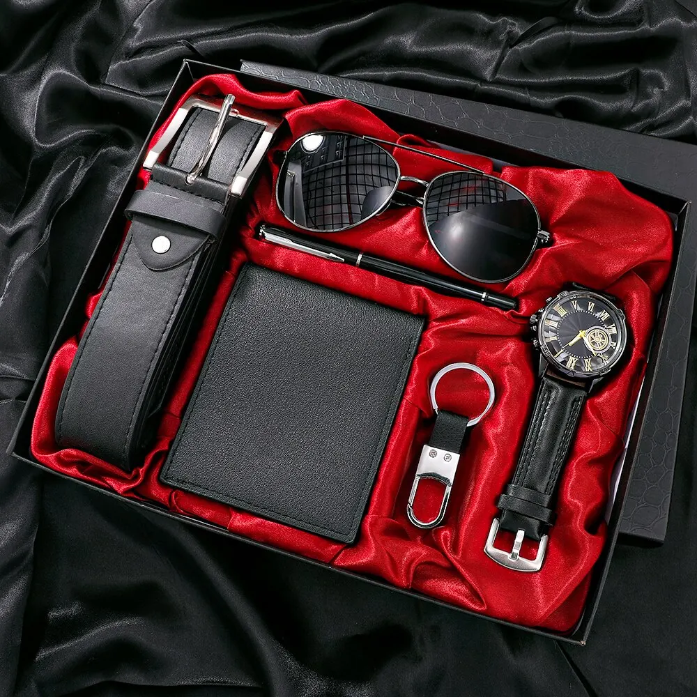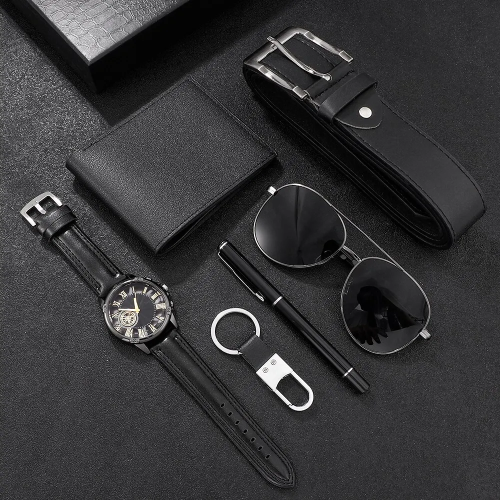 L’Ensemble 6 en 1 pour hommes est un produit polyvalent qui comprend une montre, des lunettes, un stylo, un porte-clés, une ceinture et un sac à main. Conçu et fabriqué par une entreprise de luxe, il offre des matériaux de haute qualité et un savoir-faire exceptionnel. La montre est dotée d’un design classique et professionnel, ce qui la rend idéale pour les occasions formelles. Elle est alimentée par un mouvement à quartz fiable, garantissant un chronométrage précis et des performances durables.