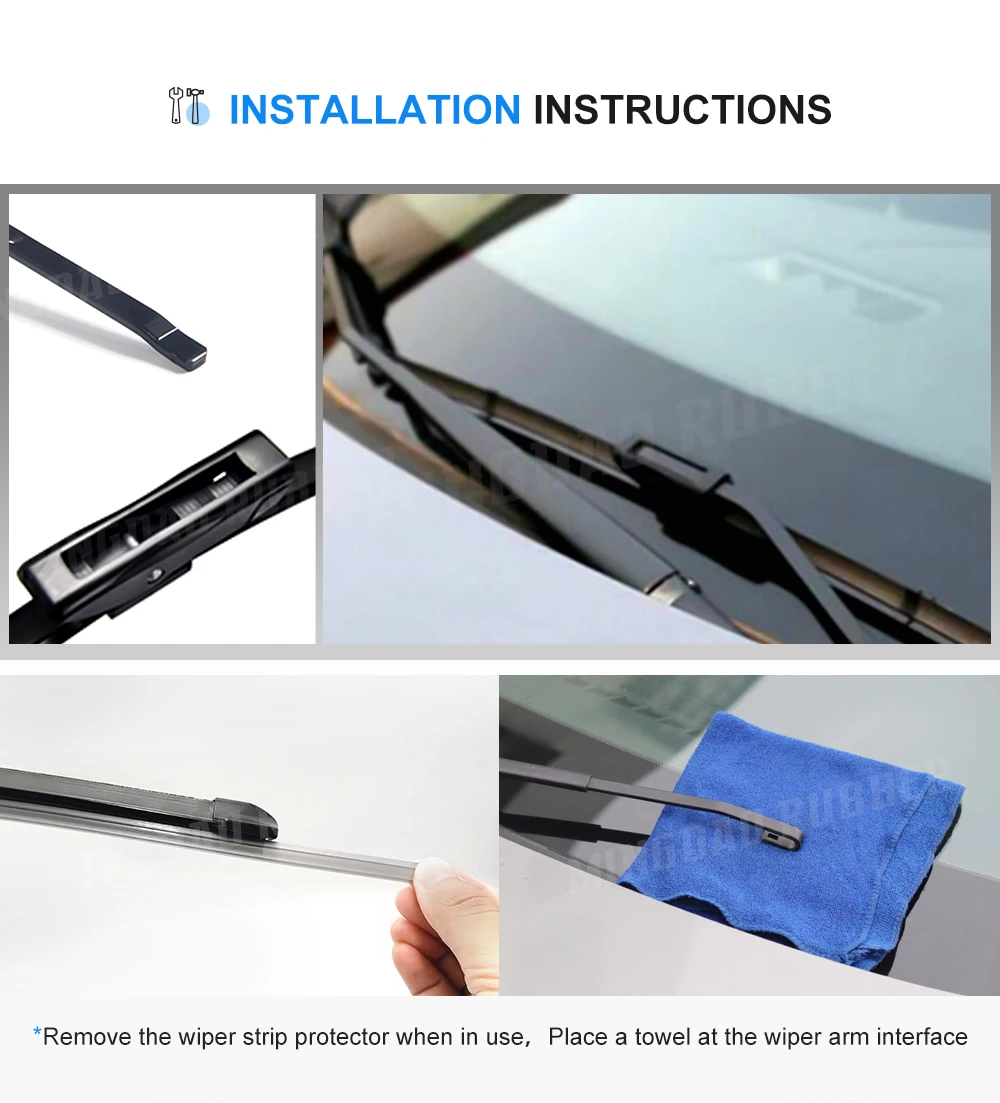 Les essuie-glaces sont fabriqués avec du caoutchouc naturel 4A, ce qui les rend parfaitement adaptés au verre du pare-brise. De plus, la barre d’acier importée garantit une pression précise, permettant aux essuie-glaces de s’adapter plus étroitement au verre.