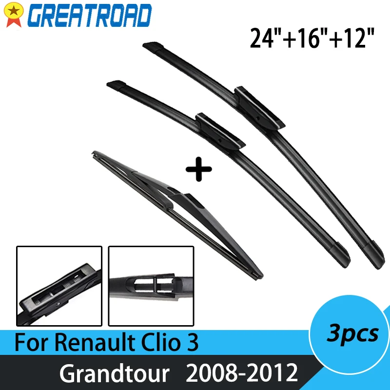 Ce jeu d’essuie-glaces avant et arrière est spécialement conçu pour les modèles Renault Clio 3 Grandtour 2008-2012. La taille des essuie-glaces est de 24 « , 16 » et 12 « , ce qui les rend adaptables à différentes parties du véhicule.