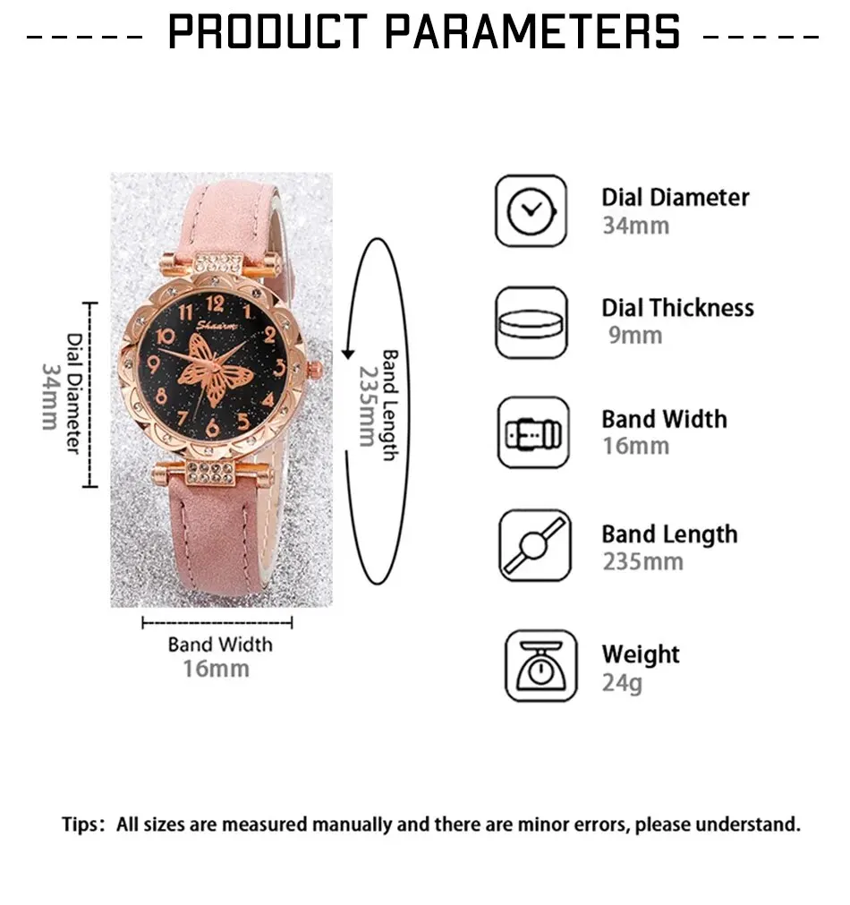 Nous pensons que la montre papillon perle rose pour femme est un choix idéal pour les femmes qui recherchent une montre décontractée et élégante. Son design féminin avec des détails en forme de papillon et des perles roses en font un accessoire tendance. De plus, le bracelet de montre est ajustable, ce qui permet de l’adapter à différentes tailles de poignet.