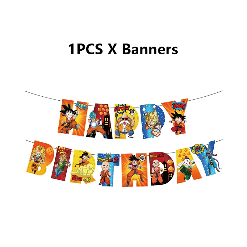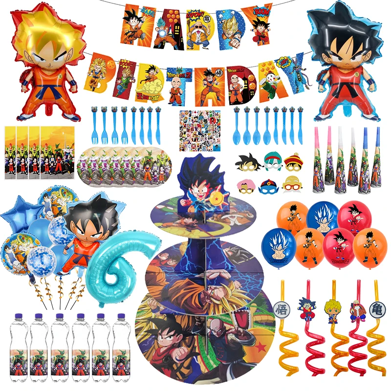 | Dragon Ball Z Son Goku pour enfants | Vaisselle, bannière, support à gâteau, ballons en aluminium et décorations de fête |