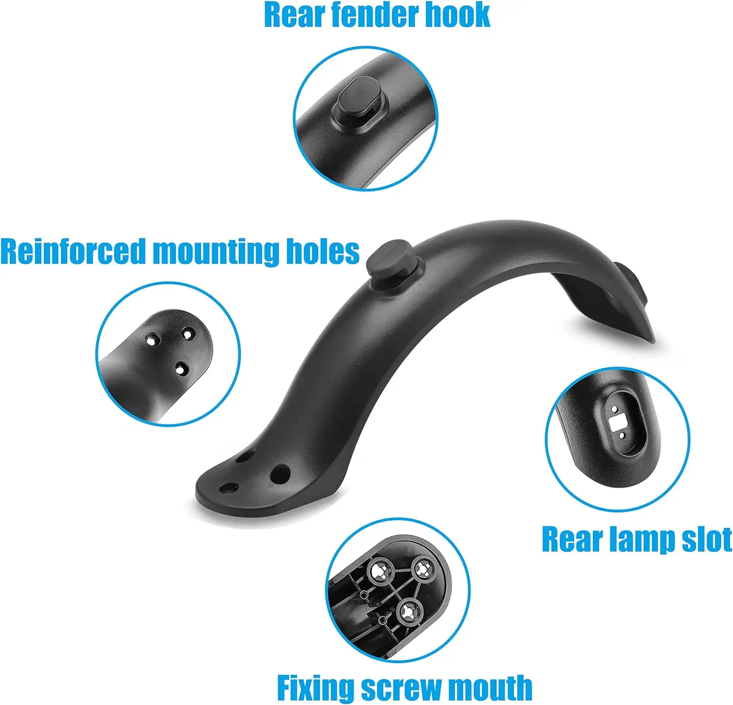 - Garde-boue arrière : empêche la boue et les éclaboussures d’eau, protège les vêtements pendant la conduite sous la pluie.