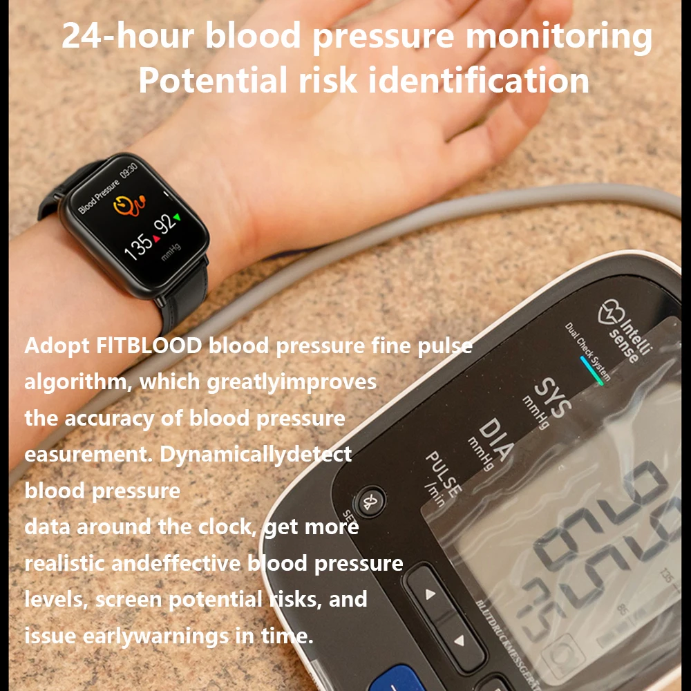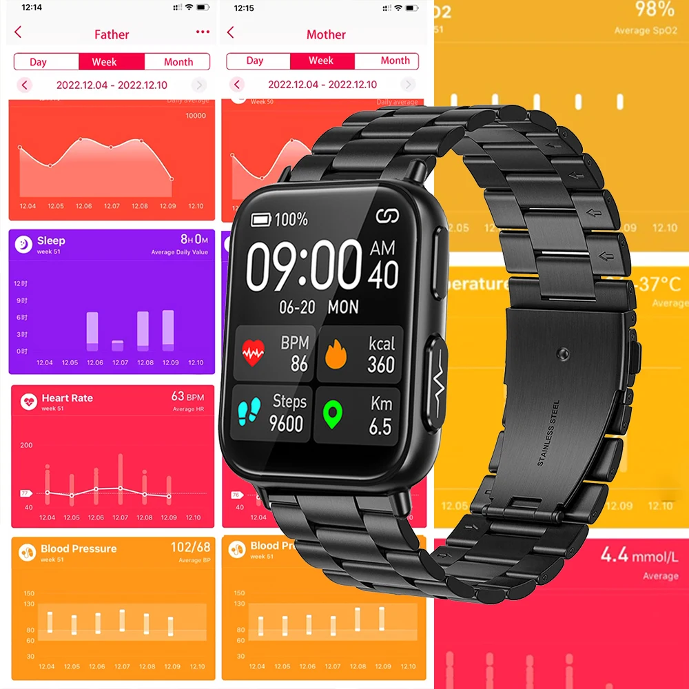 - Montre intelligente de surveillance de la glycémie pour hommes, ECG + PPG, mesure de la pression artérielle