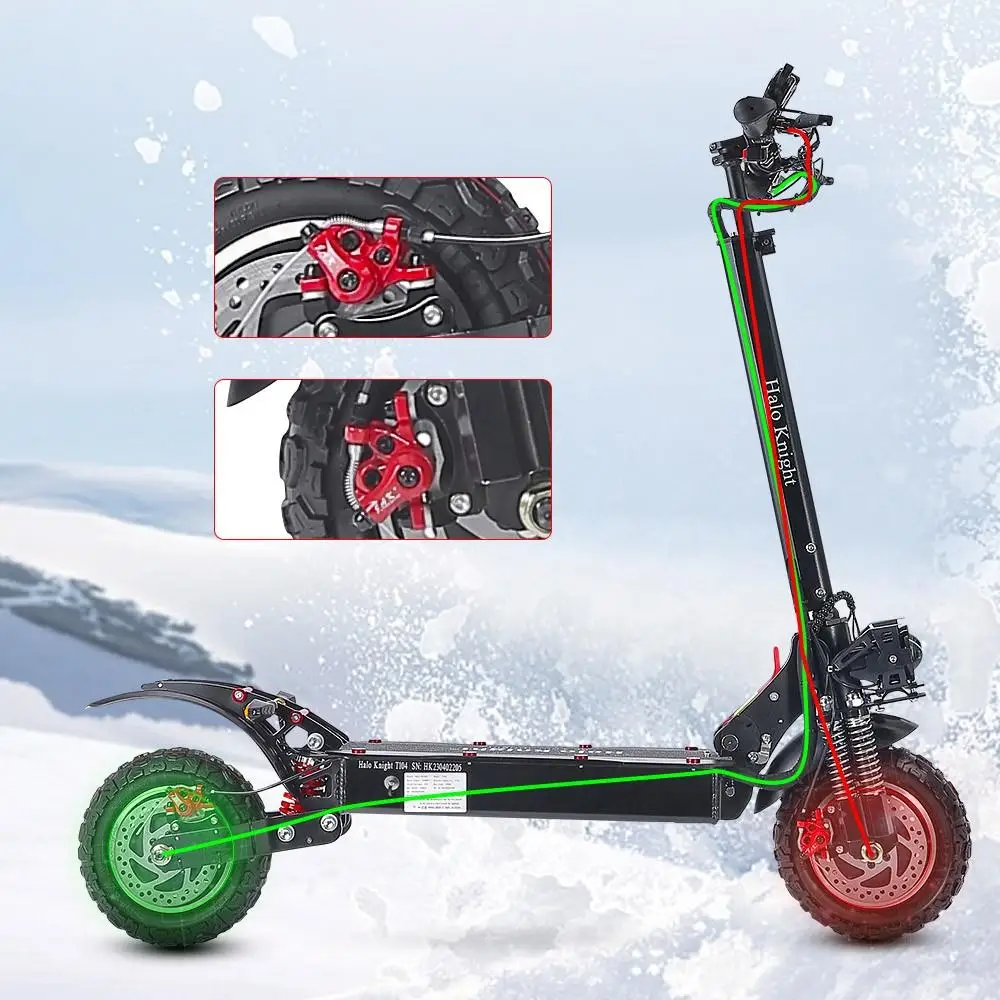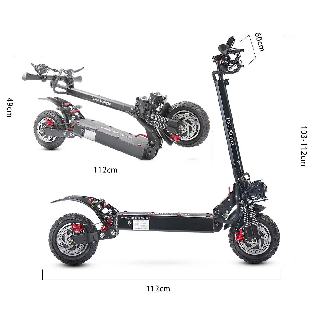 Le scooter électrique tout-terrain Halo Knight T104 a une vitesse maximale de 65 km/h et une capacité d’escalade de 40°, ce qui le rend idéal pour les conducteurs aventureux.