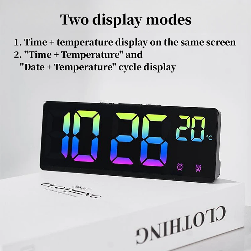 Le réveil numérique coloré avec commande vocale, température et date est un produit multifonctionnel qui offre de nombreuses options pour personnaliser votre expérience de réveil. Les deux modes d’affichage permettent de choisir entre l’affichage de l’heure avec la température ou l’affichage de l’